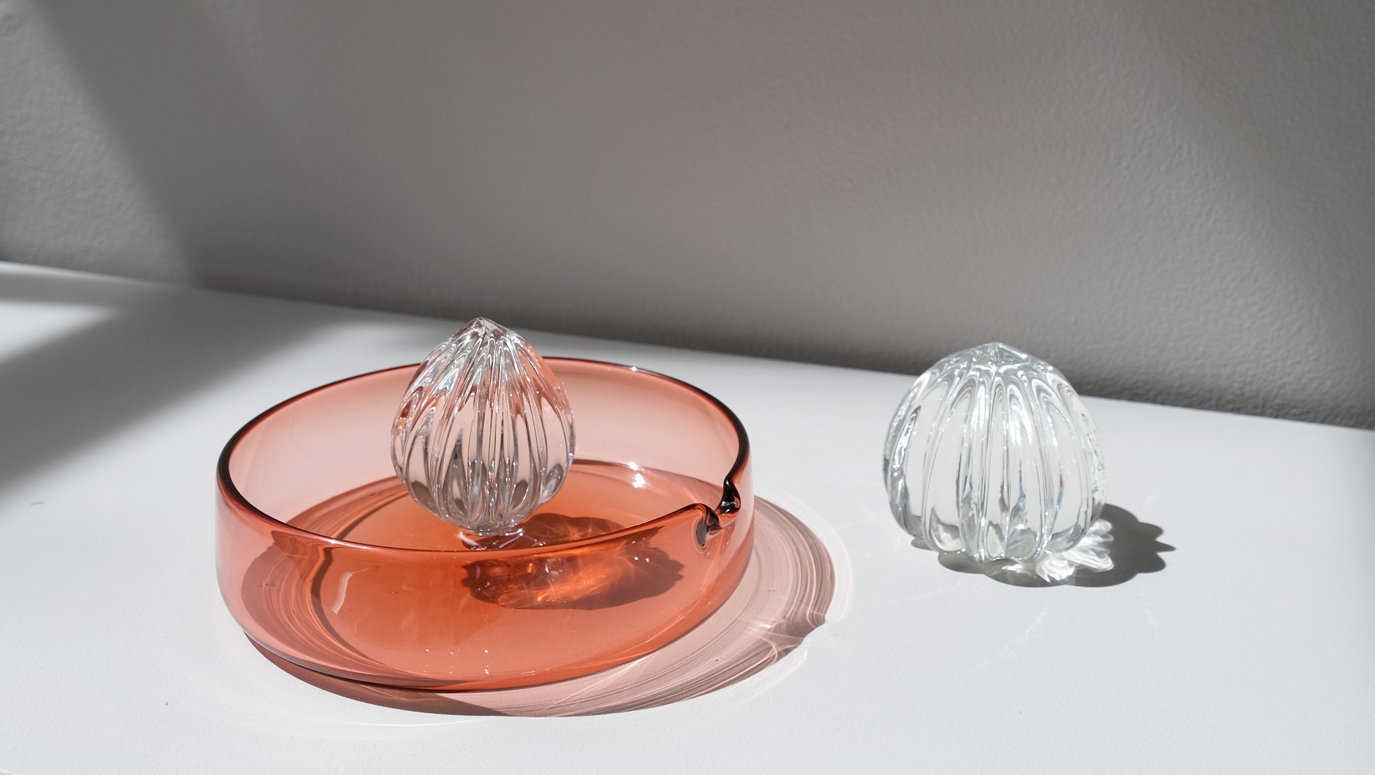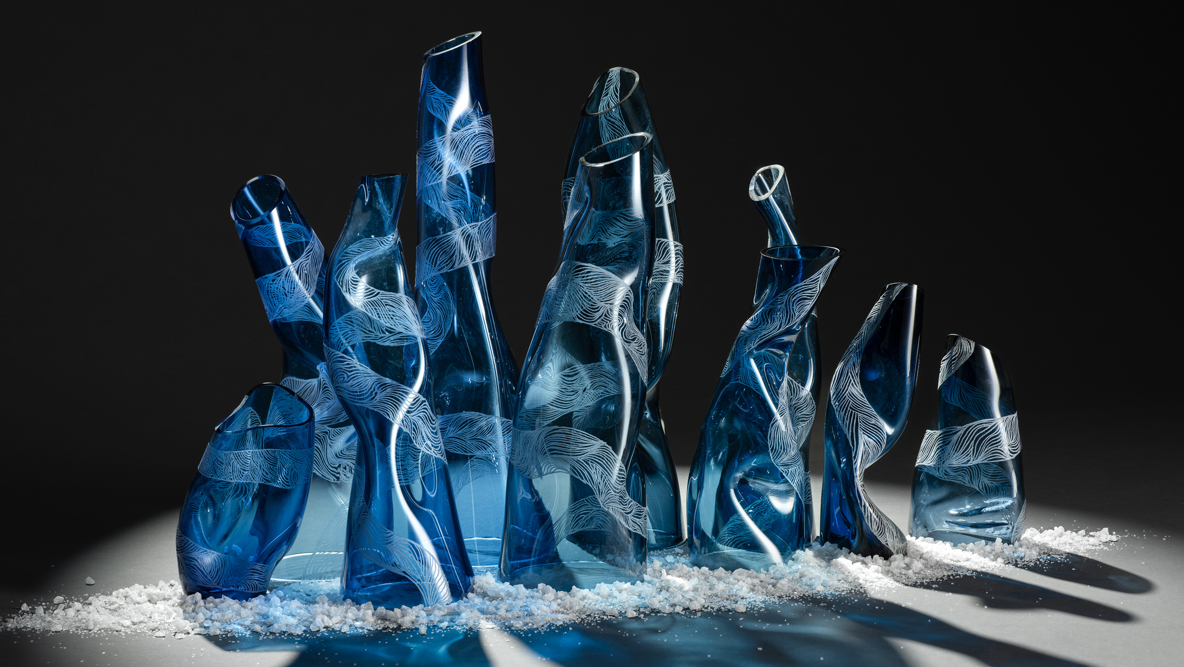 Hand blown glass with detailed carvingsĀ and fire polished.