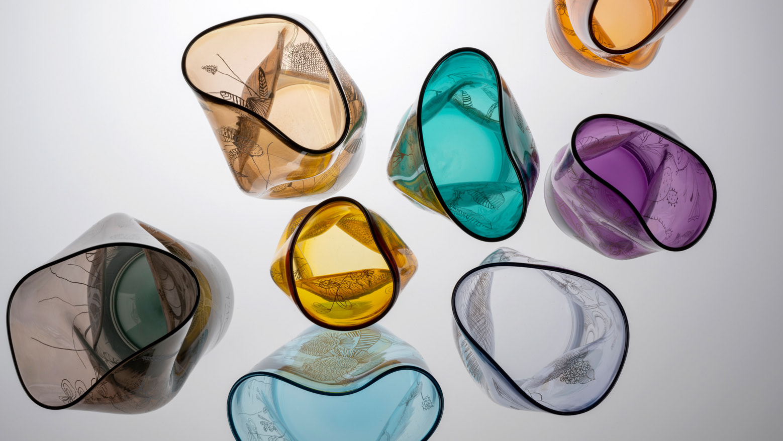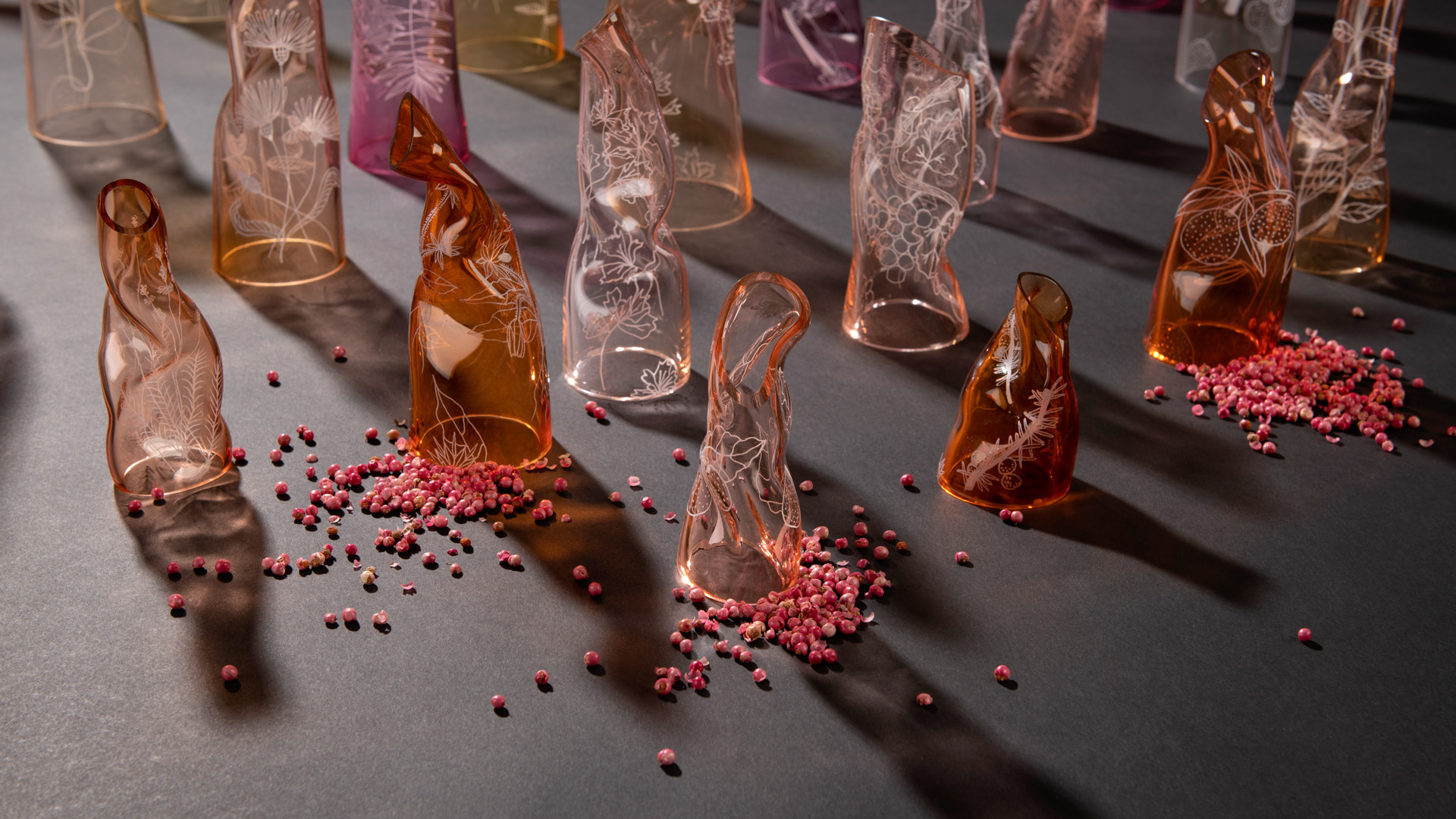 Blown glass with etching of Seppeltsfeild Gin Botanicals